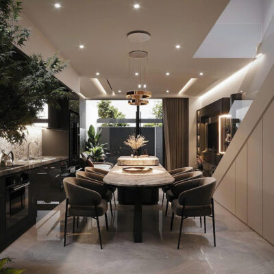 Không gian phòng khách được tổ chức để phục vụ sinh hoạt chung, bếp và phòng ăn ưu tiên sự tiện nghi, còn phòng ngủ được thiết kế theo hướng riêng tư và thư giãn. Mỗi chi tiết nội thất đều có lý do tồn tại, tránh sự dư thừa hình thức.
