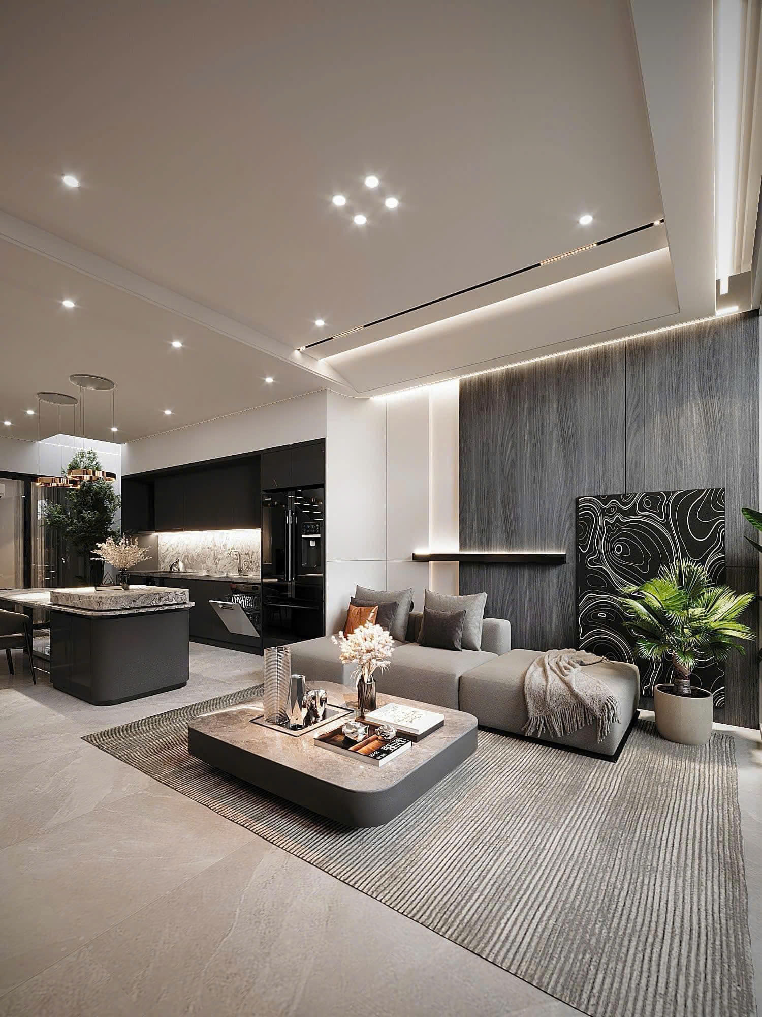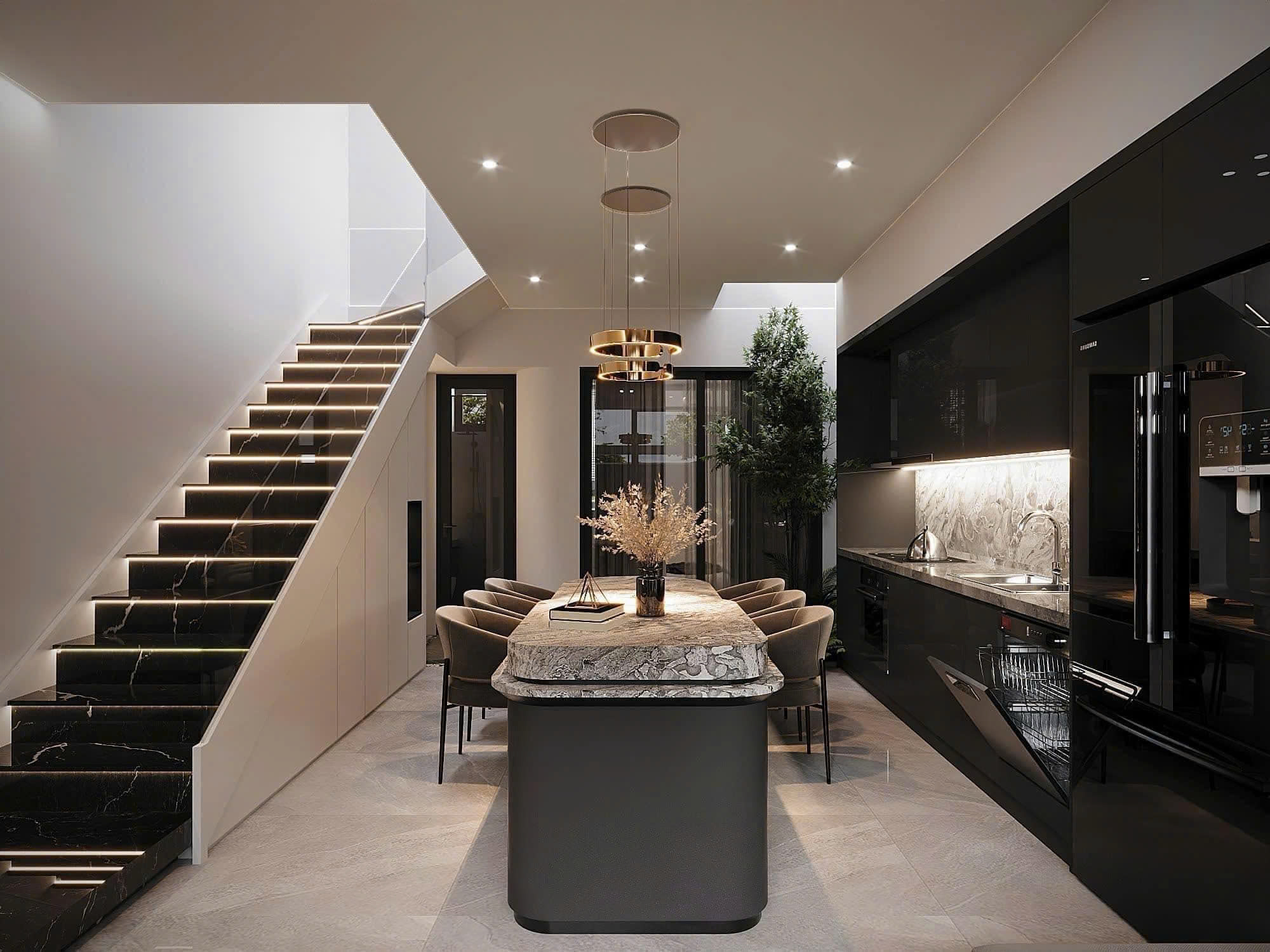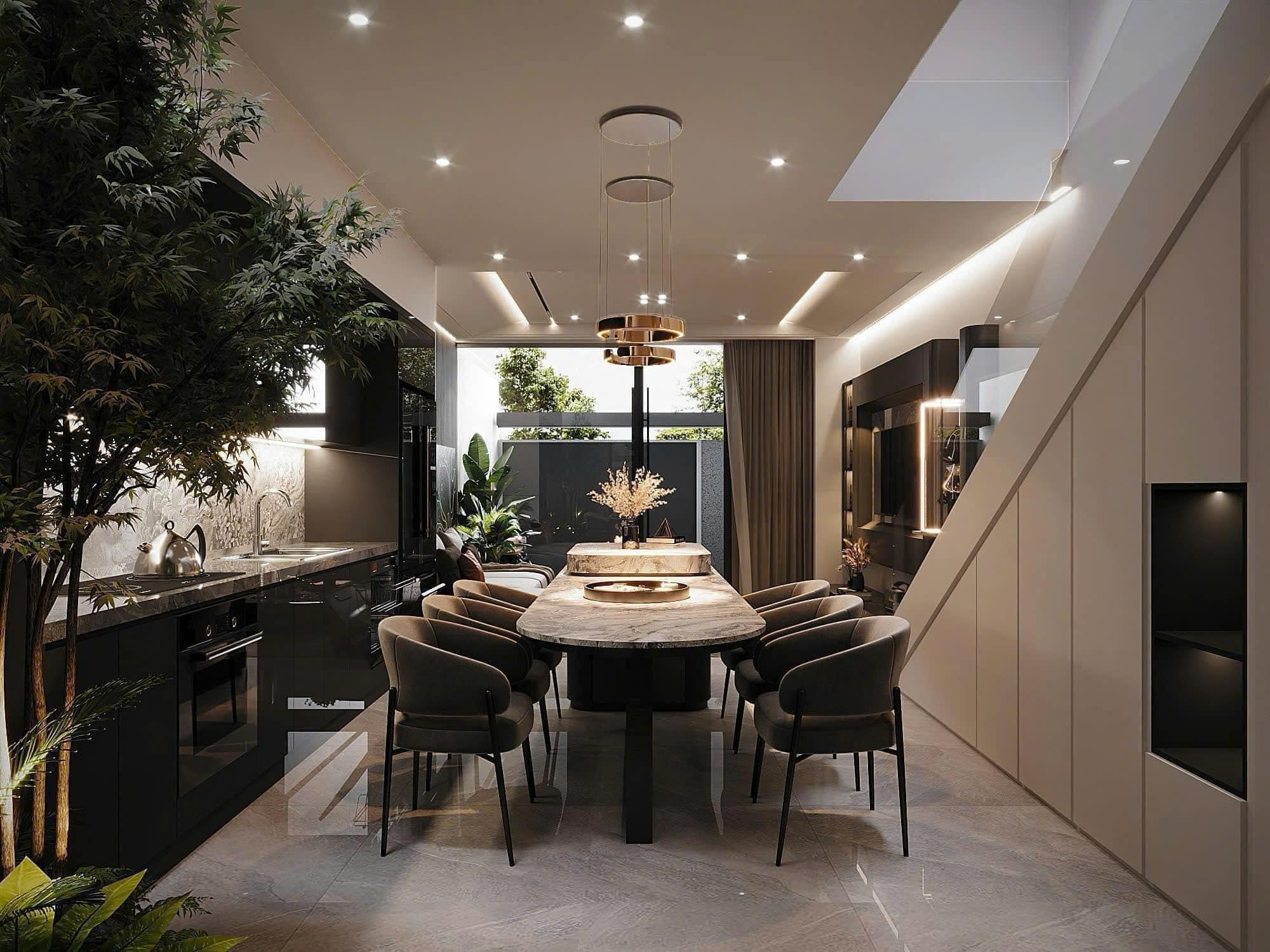 Không gian phòng khách được tổ chức để phục vụ sinh hoạt chung, bếp và phòng ăn ưu tiên sự tiện nghi, còn phòng ngủ được thiết kế theo hướng riêng tư và thư giãn. Mỗi chi tiết nội thất đều có lý do tồn tại, tránh sự dư thừa hình thức.